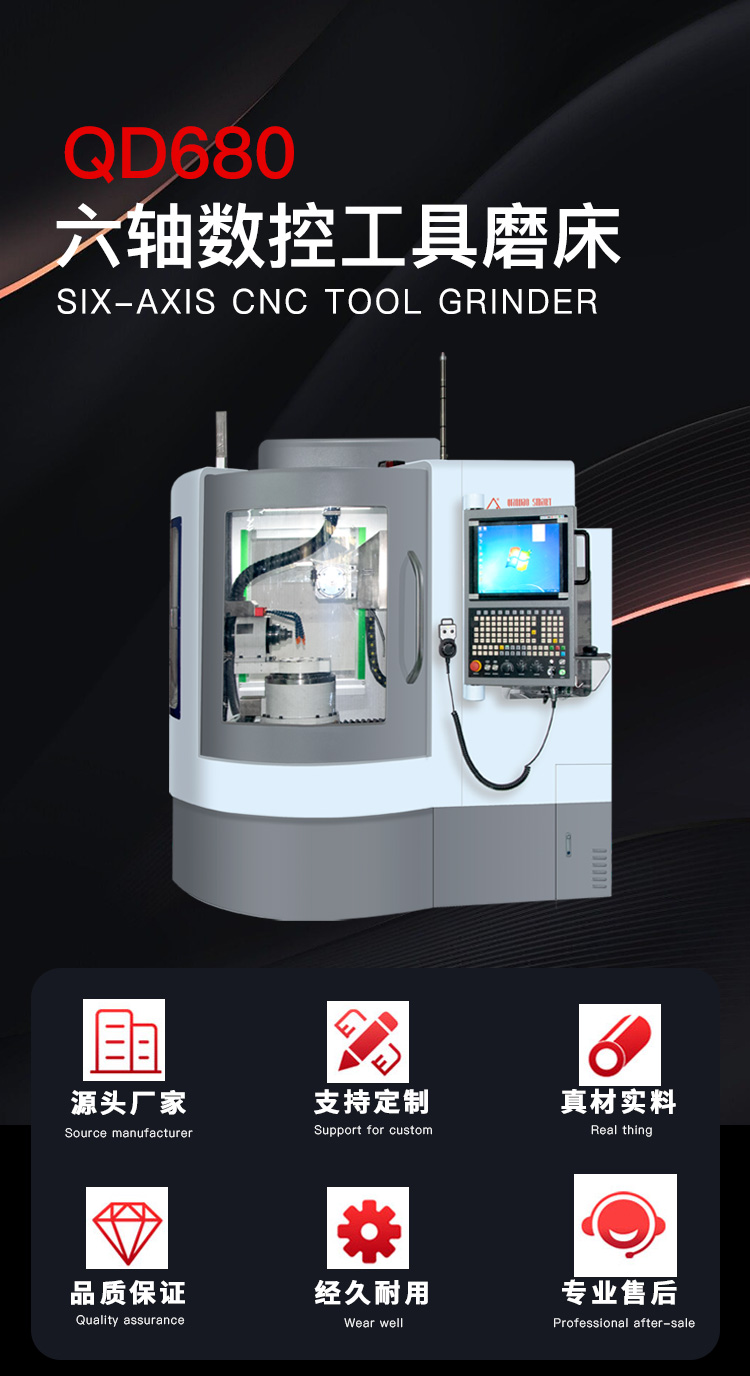 QD680六軸五聯(lián)動(dòng)數(shù)控工具磨床,適用于生產(chǎn)或修磨小規(guī)格銑削類刀具、鉆削類刀具、成形刀具等